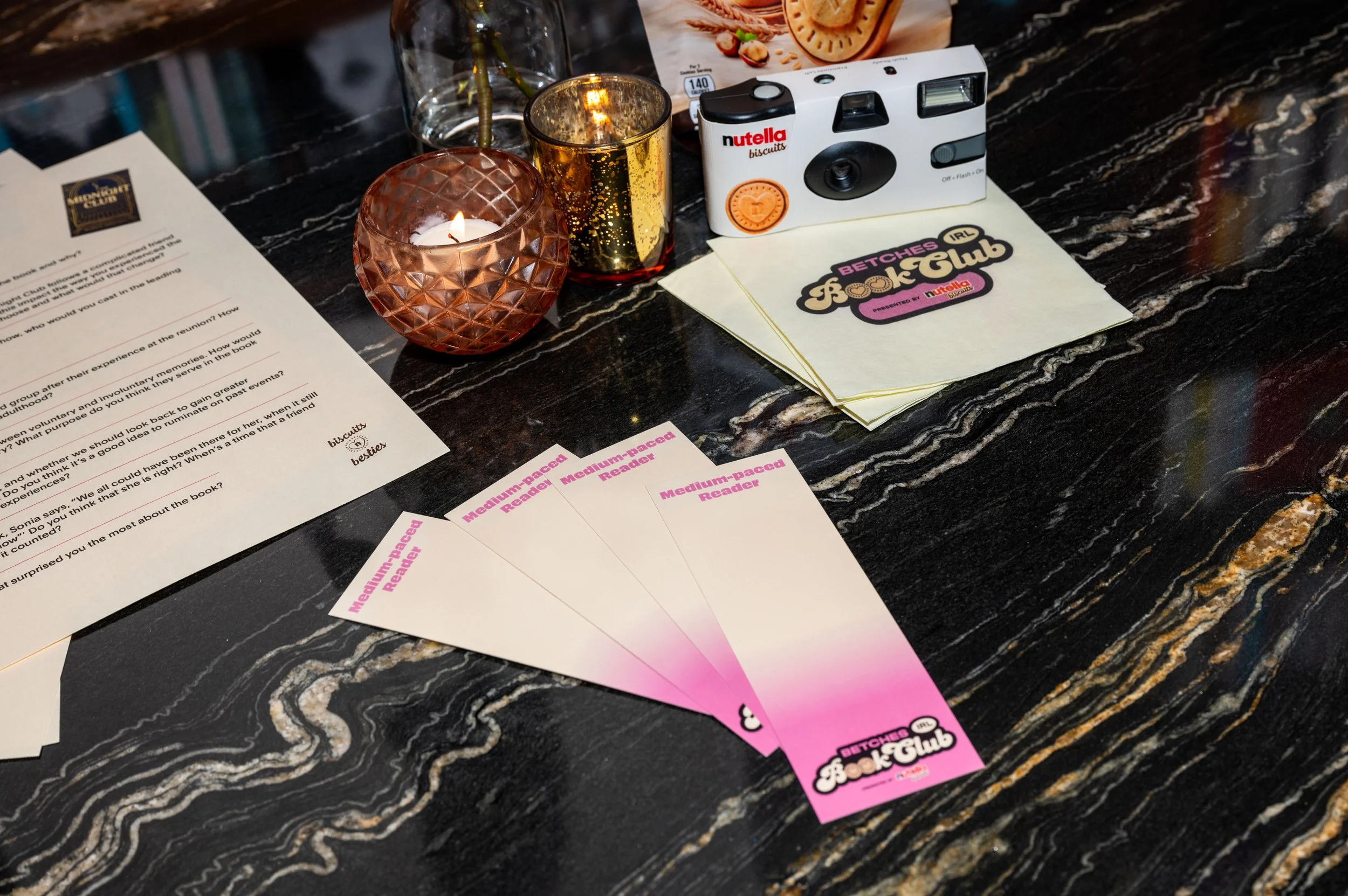 I designed all physical event material from banners to bookmarks, tote bags, and napkins—translating the brand identity into a cohesive, IRL experience.